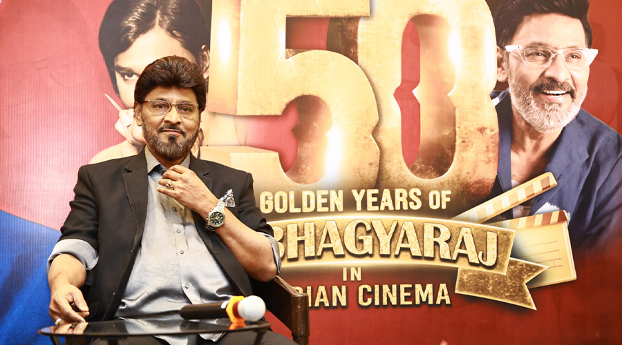 அனைத்து பத்திரிகையாளர்கள் மற்றும் ஊடகவியலாளர் நண்பர்கள் அனைவருக்கும் வணக்கம். என்னுடைய புத்தாண்டு வாழ்த்துக்களை தெரிவித்துக் கொள்கிறேன். சினிமாவில் 50 ஆண்டுகள் என்பதை நினைத்து கூட பார்க்க முடியவில்லை. என்னுடைய நண்பர்கள், எனது தாயார் என அனைவரும் என் மீது நம்பிக்கை வைத்து நான் சினிமாவில் நிச்சயம் வெற்றி பெறுவேன் என்று சொன்னார்கள். 16 வயதினிலே படத்தில் எனக்கு முதல் முறையாக பணிபுரிய வாய்ப்பு கிடைத்தது. சமீபத்தில் கமல் அவர்கள் கூட, இந்த படத்தில் பணிபுரிந்த அனைவருக்கும் அடுத்த சில ஆண்டுகளில் மிகப் பெரிய வாய்ப்பு கிடைத்தது, இதுவரை எந்த படத்தில் பணியாற்றியவர்களுக்கும் இப்படி நடந்தது இல்லை என்று கூறினார்கள். வாய்ப்பு தேடும் காலத்தில் பலரிடம் என்னுடைய உண்மையான பெயரை சொல்லாமல் கோவை ராஜா என்று கெத்தாக சொல்லிக் கொள்வேன். 16 வயதினிலே படத்தில் தான் என்னுடைய பெயரை பாக்கியராஜ் என்று வைத்தேன். என்னுடைய அம்மா எனக்கு வைத்த பெயர் இதுதான். டைட்டில் கார்டில் பார்த்துவிட்டு யார் இந்த பெயர் என்று என்னுடைய இயக்குனர் கேட்டார்கள். பிறகுதான் அது நம்முடைய ராஜன் என்று அனைவரும் சொன்னார்கள். அம்மாவின் பாக்கியத்தை இழந்து விடக்கூடாது என்பதால் கே. பாக்யராஜ் என்று வைத்துக் கொண்டேன்.