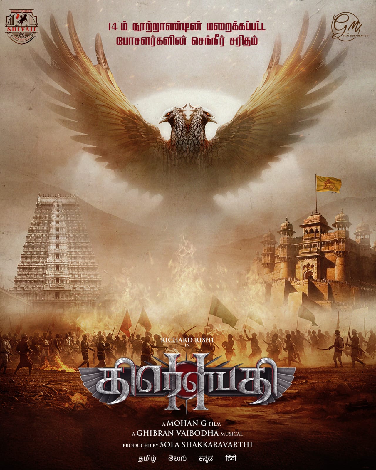 ‘திரௌபதி’யை பெரிய திரைகளில் வரவேற்கும் நேரம் இது. இயக்குநர் மோகன் ஜி மற்றும் நடிகர் ரிச்சர்ட் ரிஷி ஆகியோர் இணைந்த ‘ருத்ர தாண்டவம்’ மற்றும் ‘திரௌபதி’ படங்கள் வணிக ரீதியாகவும், விமர்சன ரீதியாகவும் வரவேற்பு பெற்றது. இப்போது இவர்கள் மீண்டும் ‘திரௌபதி 2’ படத்தில் இணைந்துள்ளனர். இம்முறை, 14 ஆம் நூற்றாண்டின் பின்னணியில் கதை அமைக்கப்பட்டுள்ளது. வரலாற்றின் பக்கங்களில் இருந்து ஒருபோதும் மறைந்துவிடாத தீவிரமான போர்வீரர்களைச் சுற்றி கதை அமைக்கப்பட்டுள்ளது. ஜிஎம் பிலிம் கார்ப்பரேஷன் நிறுவனத்துடன் இணைந்து சிவாஜி புரொடக்ஷன்ஸ் சோலா சக்ரவர்த்தி இந்தப் படத்தைத் தயாரிக்கிறார்.