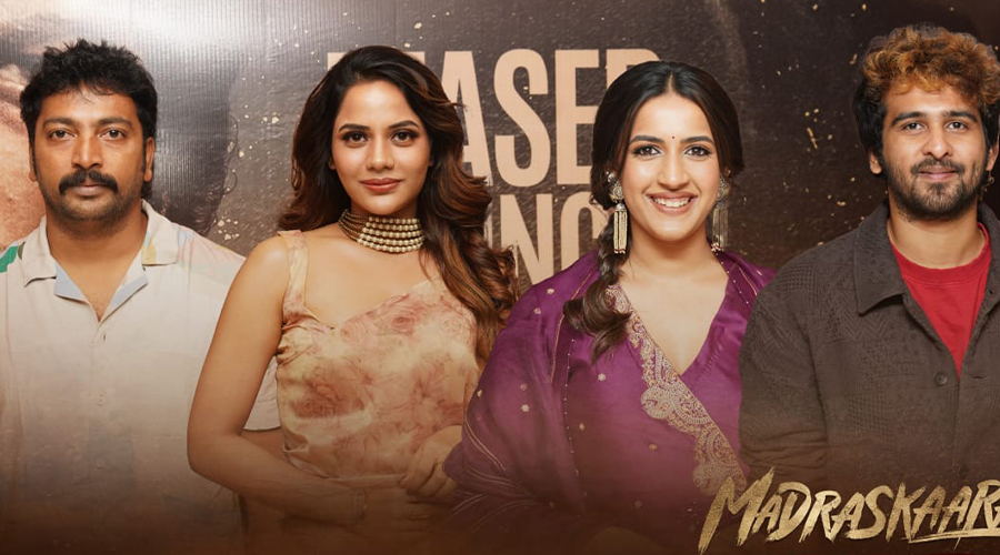 SR PRODUCTIONS சார்பில் B.ஜெகதீஸ் தயாரிப்பில், ரங்கோலி பட இயக்குநர் வாலி மோகன் தாஸ் இயக்கத்தில், மலையாள நடிகர் ஷேன் நிகம், கலையரசன், நிஹாரிகா நடிப்பில், புதுமையான ஆக்சன் டிராமாவாக உருவாகியுள்ள திரைப்படம் “மெட்ராஸ்காரன்”. விரைவில் திரைக்கு வரவுள்ள இப்படத்தின் டீசர் வெளியீட்டு விழா சென்னையில் படக்குழுவினருடன் திரைப்பிரபலங்கள் கலந்துகொள்ள, பத்திரிக்கை மற்றும் ஊடகத்தினர் முன்னிலையில் நடைபெற்றது.