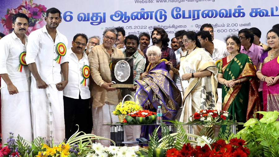 மேலும், இன்னும் மூன்று ஆண்டுகளுக்கு இந்த அணி சொன்ன வாக்குறுதிகளை நிறைவேற்ற செயல்படும். பொதுக்குழு சிறப்பாக நடந்து முடிந்தது. சூப்பர் ஸ்டார் ரஜினிகாந்த் அவர்கள் தாதாசாகேப் பால்கே விருது வாங்கியதற்காக வாழ்த்து தெரிவித்தோம். அதேபோல் , பத்மஶ்ரீ விருது பெற்ற சவுகார் ஜானகி அம்மாவுக்கு வாழ்த்து தெரிவிக்கப் பட்டது. பாரதி விஷ்ணுவர்த்தன், ராதிகா சரத்குமார் ஆகியோருக்கும் கவுரவிக்கப் பட்டார்கள்.
