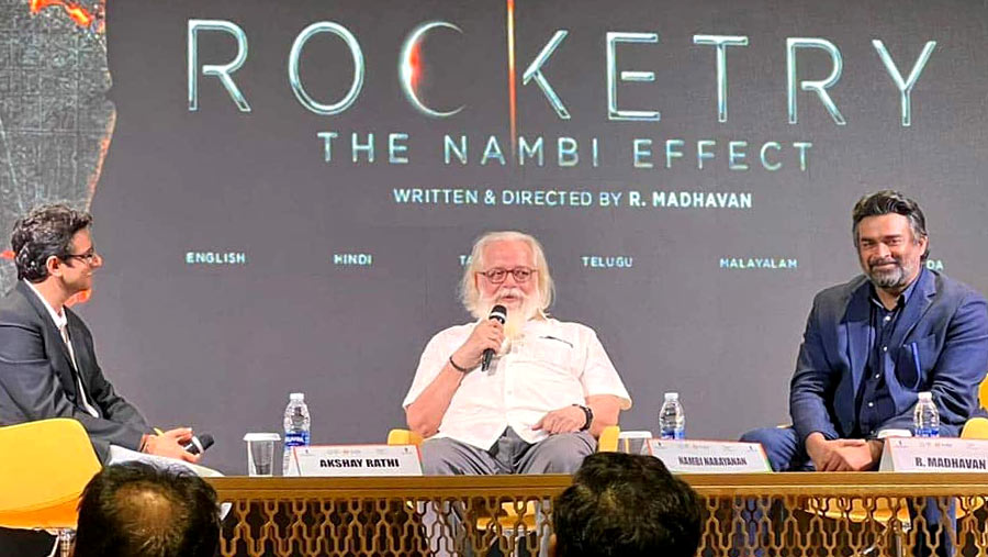 இந்திய விண்வெளி ஆய்வு மையத்தின் முன்னாள் விஞ்ஞானி மற்றும் விண்வெளிப் பொறியியலாளர் நம்பி நாராயணனின் வாழ்க்கையை அடிப்படையாகக் கொண்டு உருவாகியுள்ள படம், ராக்கெட்ரி. சிம்ரன், ரவி ராகவேந்திரா, சாம் மோகன், மிஷா கோஷல் உள்ளிட்ட பலர் நடித்திருக்க, கதை, திரைக்கதை எழுதி இயக்கியிருப்பதுடன் நம்பி நாரயணனாக நடித்திருக்கும் மாதவன், விஜய் மூலனுடன் இணைந்து தயாரித்துள்ளார்.