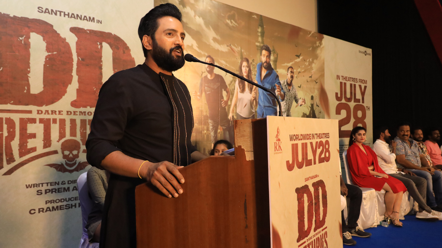 ஆர் கே என்டர்டெயின்மென்ட் ரமேஷ் குமார் தயாரிப்பில், அறிமுக இயக்குநர் பிரேம் ஆனந்த் இயக்கத்தில் சந்தானம் நாயகனாக நடிக்கும் ‘டிடி ரிட்டர்ன்ஸ்’ ஜூலை 28 அன்று திரையரங்குகளில் வெளியாகவுள்ள நிலையில், திரைப்படத்தின் பத்திரிகையாளர் சந்திப்பு சென்னையில் நேற்று நடைபெற்றது.