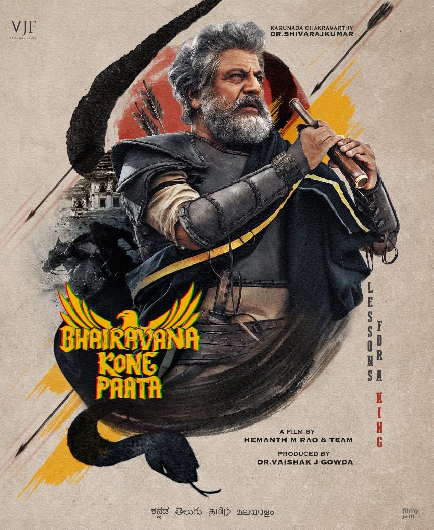 டாக்டர் சிவராஜ் குமார் கவசம் அணிந்து நீண்ட நரை முடியுடன் காட்சியளிக்கும் முதல் தோற்றத்தை தயாரிப்பாளர்கள் வெளியிட்டுள்ளனர். இப்படத்தின் பர்ஸ்ட் லுக் ரசிகர்கள் எதிர்பார்க்காத வகையில் அமைந்திருப்பதால்.. நல்ல விமர்சனங்களை பெற்றிருக்கிறது. சமீபத்தில் படக்குழுவினர் இப்படத்தின் தலைப்பை வெளியிட்ட போது தலைப்பில் உள்ள தனித்துவத்திற்காகவும், தலைப்பு முழுவதும் கன்னடத்தில் வைத்திருக்க குழு ஒன்றினை தேர்வு செய்ததற்காகவும் ஒருமனதாக பாராட்டப்பட்டது.