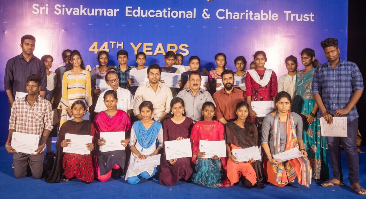 திரைக்கலைஞர் சிவகுமார் அவர்கள், தனது கல்வி அறக்கட்டளை மூலம் கடந்த 43 ஆண்டுகளாக, ப்ளஸ்-டூ தேர்வில் நல்ல மதிப்பெண்களை எடுத்த, மாணவர்களைத் தேர்ந்தெடுத்து பரிசளித்து பாராட்டி கௌரவித்து வருகிறார். மாணவர்களை ஊக்கப்படுத்த, தனது 100-வது படத்தின் போது, சிவகுமார் கல்வி அறக்கட்டளையைத் தொடங்கினார். தகுதியான மாணவ, மாணவிகளை அடையாளம் கண்டு, தனது அறக்கட்டளை மூலம் பாராட்டி வருகிறார். ‘சிவகுமார் கல்வி அறக்கட்டளை’யின் 44-ம் ஆண்டு நிகழ்வு, சென்னையில் நடைபெற்றது. விழாவில் 25 மாணவ, மாணவிகளுக்கு தலா ரூ.10,000/- வீதம் மொத்தம் ரூ. 2,50,000/- (இரண்டு லட்சம் ஐம்பதாயிரம் மட்டும்) பரிசளிக்கப்பட்டது. இத்துடன் திண்டிவனம் கல்வி மேம்பாட்டு குழு நடத்தும், ஏழைமாணவர்களுக்கான, ‘தாய்தமிழ் பள்ளிக்கு’ நிதி உதவியும், மூத்த ஓவிய கலைஞர் ஜெயராஜ் அவர்களுக்கு ரூபாய் ஒரு லட்சமும் வழங்கப்பட்டது. செங்கல்பட்டு மாவட்டம் சோமாண்டர்குடி அரசு உயர்நிலைப் பள்ளி ஆசிரியர் திரு.ஞானபிரகாசம் அவர்களின் அர்ப்பணிப்பு மிக்க பணிகளுக்காகவும், ‘குறள் வழி கல்வி’ என திருக்குறளின் மேன்மையை பள்ளி எங்கும், மாணவர்களின் மனதில் விதைக்கும் பணிகளை முன்னெடுத்து வரும் திருச்சி சிறுகாம்பூர் அரசு மேல்நிலைப் பள்ளிக்கு பாராட்டும் பரிசும் வழங்கப்பட்டது.