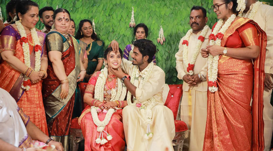 முன்னதாக நேற்று க்ரீன் பார்க் ஸ்டார் ஹோட்டலில், நடைபெற்ற திருமண வரவேற்பு நிகழ்ச்சியில், நடிகர்கள் சசிகுமார், சிவகார்த்திகேயன், எம் எஸ் பாஸ்கர் , ரமேஷ் திலக், நடிகைகள் சிம்ரன்,அனஸ்வரா விஜயன், தயாரிப்பாளர்கள் 2D Entertainment ராஜசேகர் கற்பூர சுந்தரபாண்டியன், சௌந்தர்யா ரஜினிகாந்த், மகேஷ் ராஜ் பசிலியான், அருண் விஷ்வா, ஷினீஷ், இயக்குநர்கள் ‘பூ’ சசி, ரஞ்சித் ஜெயக்கொடி, சண்முகப்பிரியன் (லவ் மேரேஜ்), பிரபு ராம் வியாஸ் (லவ்வர்) , மதன் (அபிஷன் ஜீவிந்த் நாயகனாக நடிக்கும் படம்) இசையமைப்பாளர் ஷான் ரோல்டன், பாடலாசிரியர் மோகன்ராஜ், விநியோகஸ்தர் விர்தூஷ், எடிட்டர் பரத் ராம், திங் மியூசிக் சந்தோஷ், ஜியோ ஹாட்ஸ்டார் சபரி ஆகியோர் கலந்துகொண்டு புதுமண தம்பதிகளை வாழ்த்தினர்.